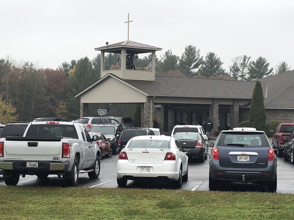 The parking lot is full for the funeral of James and Denise Closs in Cameron, WI (next to Barron) sheriff told us family believes Jayme still alive @WCCO
