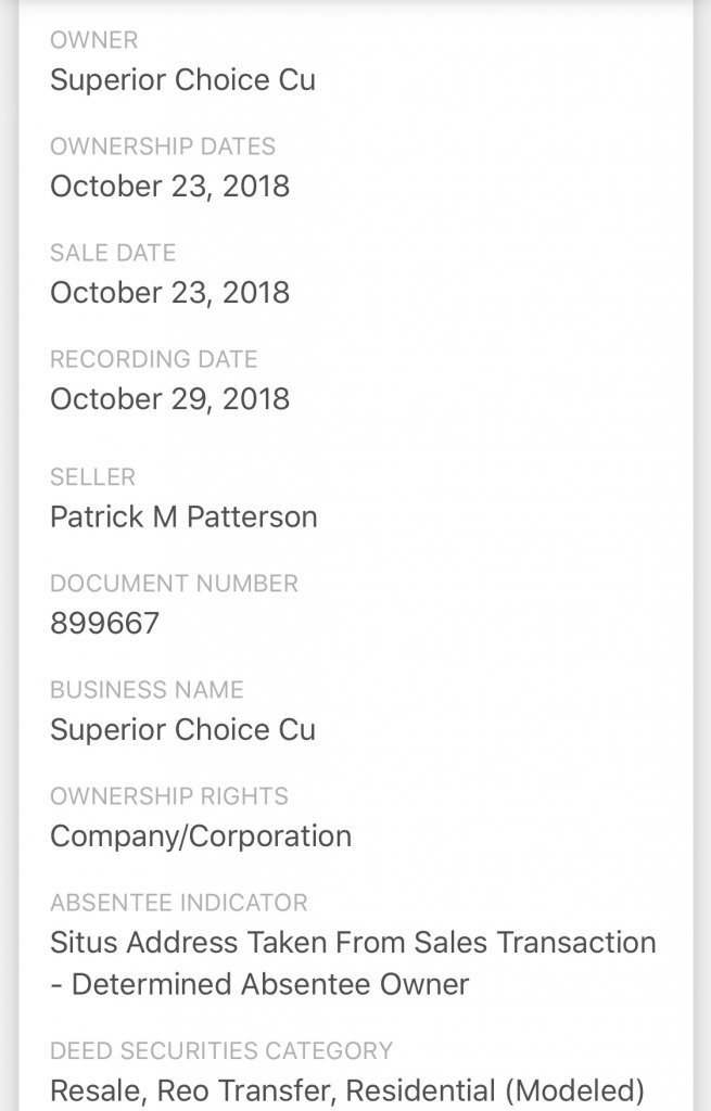 For some reason the property record isn’t matching another database I am looking at. The property record still shows his name, but the deed shows a bank. I’m guessing the property record may not update that frequently. I know my county sometimes has a few months delay in the update. Oddly enough the deed changed right around when the murders and kidnapping happened.