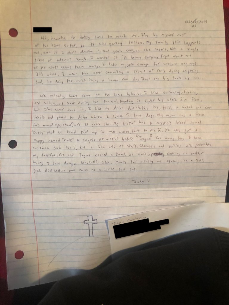 Yea. I saw the cross too. Sorry JP- a little late for that oneThat struck me too big time. The fact he is still being supported by family as well even though he does not "deserve" it was another part that struck me, no big appreciation or thanks over it, of course he was writing a letter to who knows who so maybe not so odd. I am trying not to overanalyze. I even told myself the hearts around Jayme's name was perhaps wishing her well/regret/guilt (tried to look at it another way and tried to be fair--why, I do not know--maybe because it is Radar) but the remarks around that do not lend to that whatsoever. I think it was on the envelope or another page did you notice the cross? Many try that once jailed or in prison... They found Jesus or are "born again"... Just speculation...