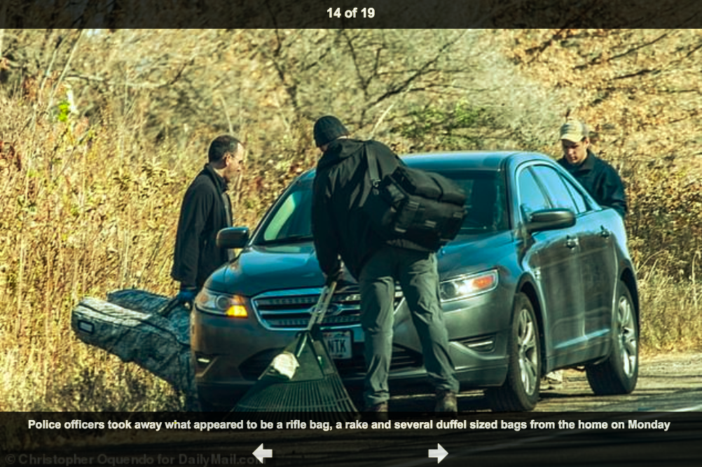 Metal detectors fits with the rakes for their equipment. I wonder how many spent rounds they found outside the house? This seems to confirm that the perp was standing outside and fired at the door. Casings would have gone in the bushes and all over the porch area. JMO.