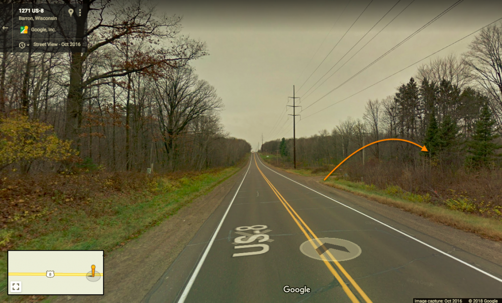The second image is what a person would see of the Closs home and yard when driving by. The view would be almond completely blocked when the trees are leafed out.