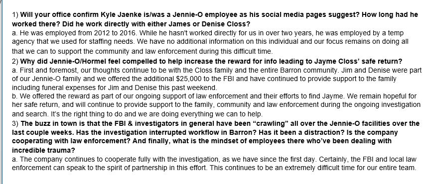 AMBER ALERT WI - Jayme Closs, 13, Barron, missing after parents found shot, 15 Oct 2018 *endangered* #16