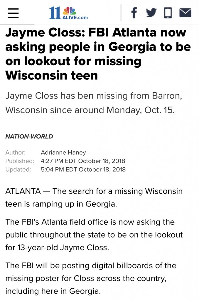 AMBER ALERT WI - Jayme Closs, 13, Barron, missing after parents found shot, 15 Oct 2018 *endangered* #18