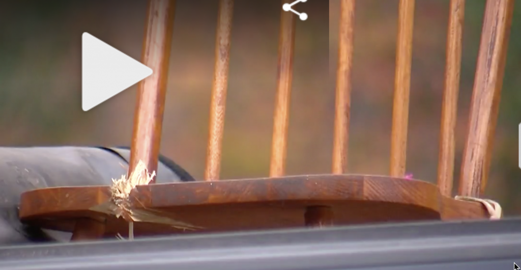 I don’t think the chair looks old, or the wood dry. I have a thing for old chairs, so I’ve seen the kinds of splits in the seat you are speaking of. However, because old chairs are so dry, the split would likely be a pretty clean one if you were to slam it down. I don’t think you would see that kind of splintering unless we’re talking about another object being forced into the crack...such as an ax. I find these up close pics of the chair rather disturbing because I can’t think what else could have caused this damage.