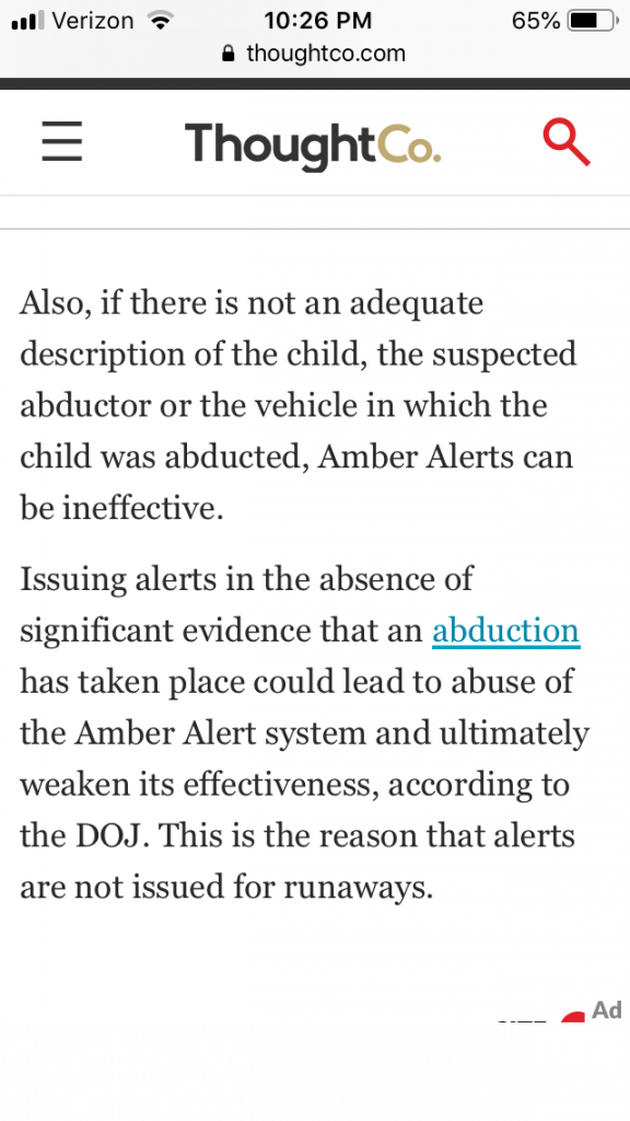Facebook Question: Why haven't you said she is abducted? Just missing and endangered.