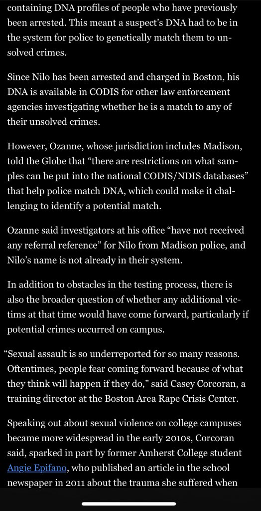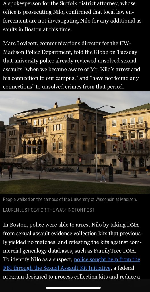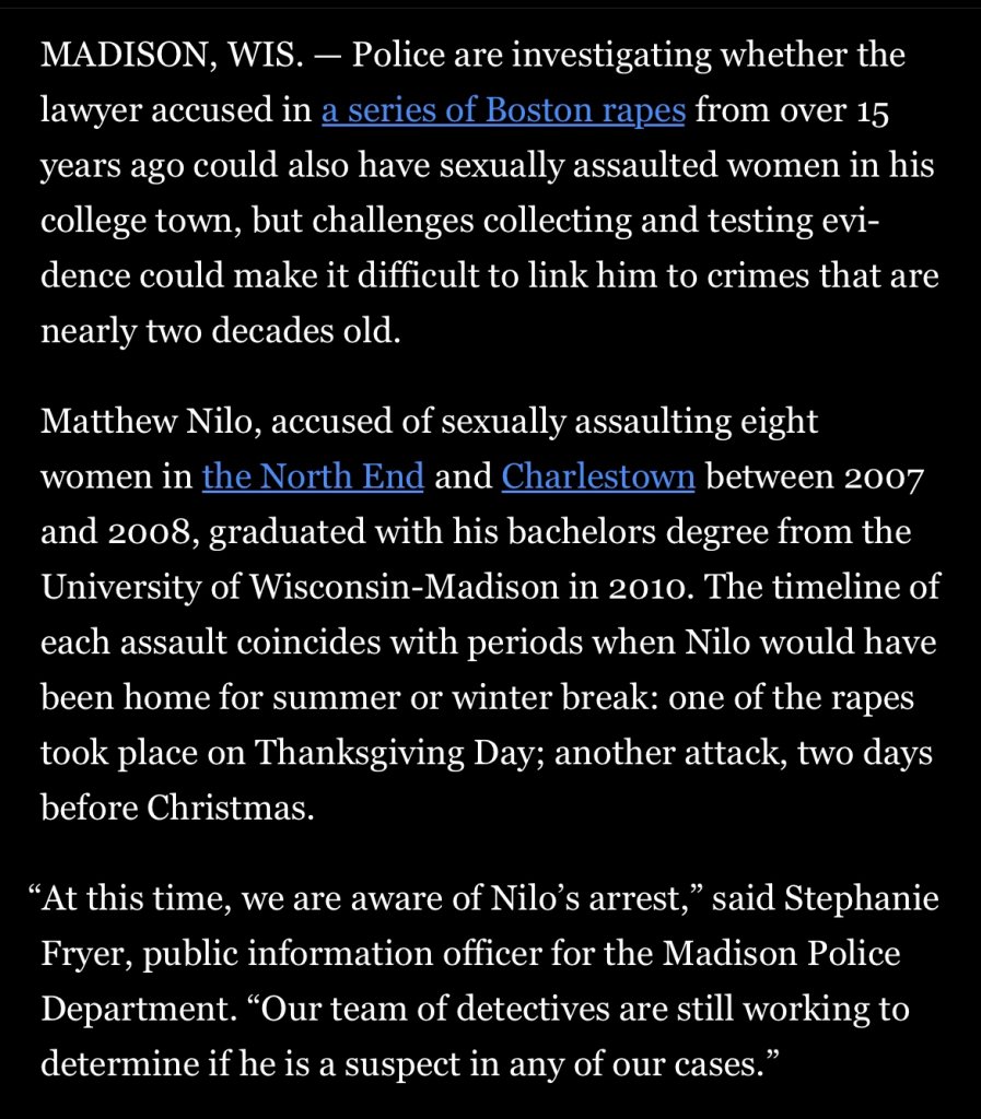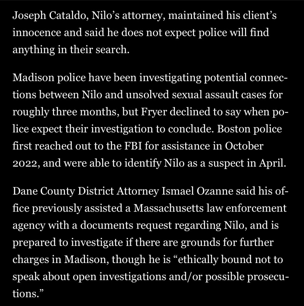 From the Boston Globe Aug 24 2023. I am starting to believe that Madison LE, 15-16 years ago, were unable to collect DNA. If I’m wrong I am hoping that in time, technology will further help Madison solve these cases…