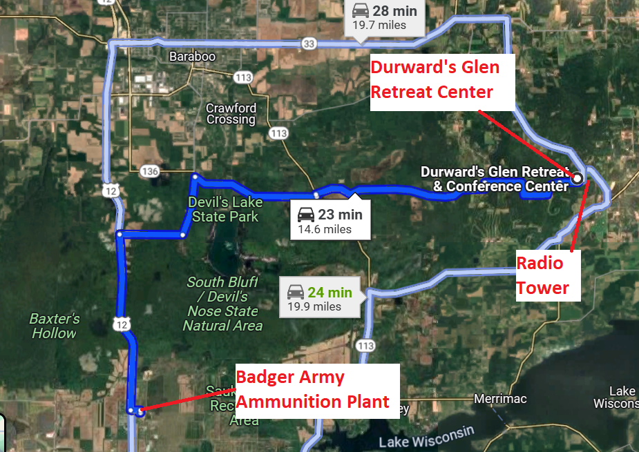 Durward's Glen Retreat Center W11876 McLeisch Rd, Baraboo, WI or the radio tower should be changed to the last place he went missing from. If he left his vehicle on foot then he may have had car problems.