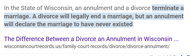 Interesting that the wife is filing for annulment after 20+ years of marriage. Jmo. Would that be important from a religious viewpoint? Or is separation/annulment just how it's listed, legally, in WI?