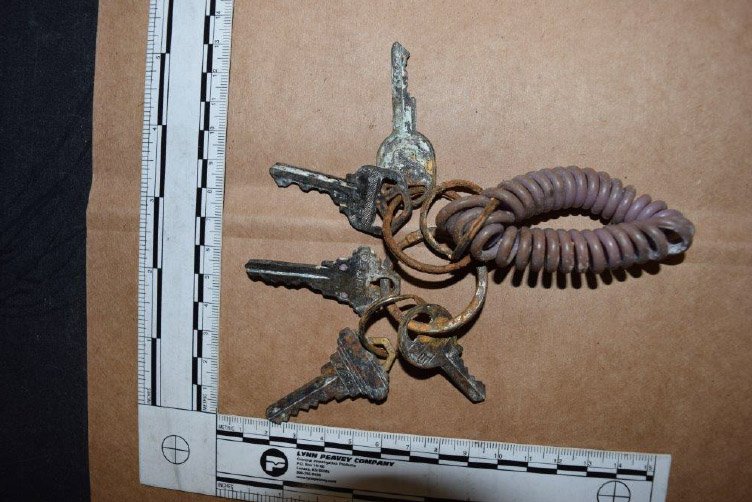 Those keys have a lot of rust on them - any possibility they were in the lake? Were any other found articles discovered to have some kind of water damage to them?