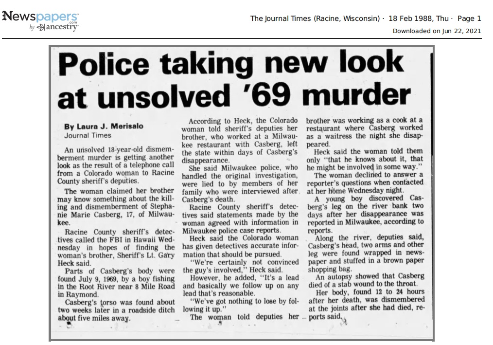 Either way, the MPD needs to update their skimpy 57 word write up on their cold case page, which, I guess, is better than the Racine Sheriff's Department's webpage. They have nothing up.