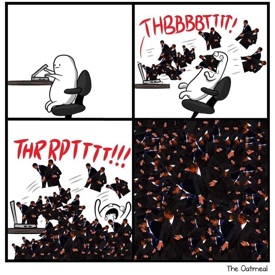 As far as this incident goes, I think it’s easy to become full of yourself in Hollywood. That’s how I see this—two people who need to lighten up and quit taking themselves so seriously. They’re not above the jokes. They’re not better than everybody else. The rules should apply to everyone in the same way. Unfortunately Hollywood is very bad at that, as evidenced by the incident not resulting in his removal from the theater right then. As others have pointed out, Harvey Weinstein got to keep his Oscars. And just look how long it took to bring him to justice for all the horrible wrongs he did. Hollywood let it happen all that time. I worked in that industry for years, but I always tried to keep a little removed because it can be soooooo toxic.