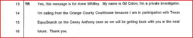 So here is a snip of the call Investigator Gil made to Anne P. his message clearly implies he is WITH TES not the defense!!!!!!!!!!!!!!!!!! LIAR LIAR LIAR and UNETHICAL!!!!!!!!!!!!!!!!!!!!!!!!!!!!!!!