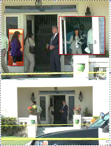 Important note: the slyly placed inset on the right side of PIC #2 (below) of Det. Tsuida from a SUBSEQUENT day (NOT Wed 07/13/2013) of investigation wearing greenish/grayish suit is DECEPTIVE. Again, Det. Tsuida was wearing *BLACK blazer* with a *LIGHT BLUE t-shirt* on Wed when Rebecca was reported dead, and large hunchback woman entering Spreckels mansion cowering and with her hand shielding her face wearing *GRAY vest with bow tied in the back* was taken Wed morning).