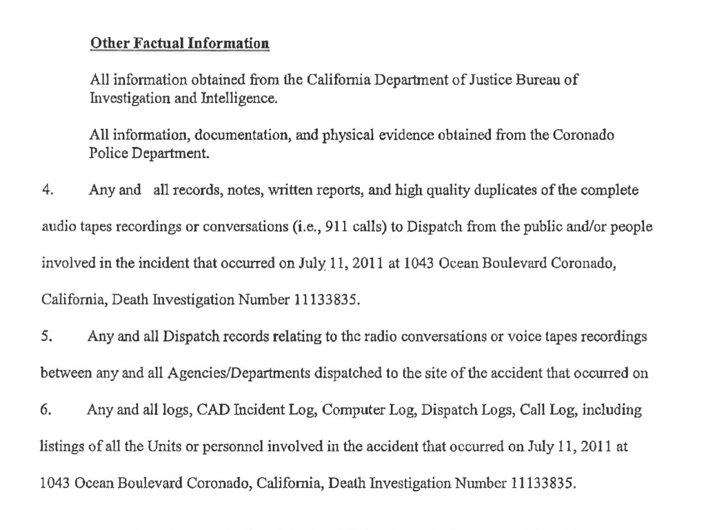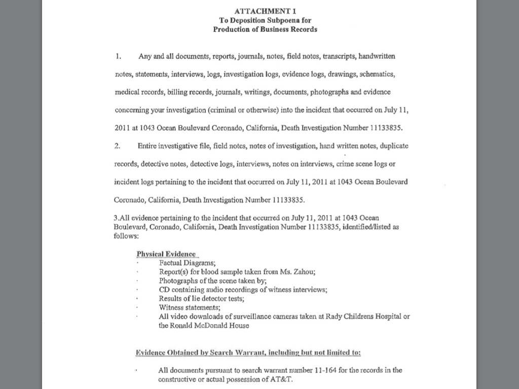 Hello AZLawyer! Thanks for your expertise here. This is what Dina is asking for, and the SDSO said they would give it to her but needed the supeona.