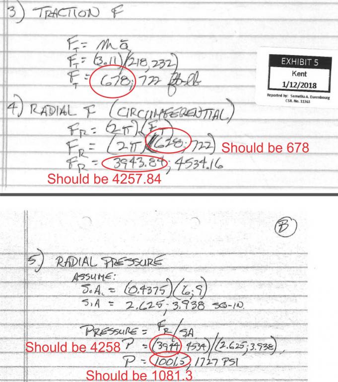 Lezah, you’re absolutely correct that the error was doing the defense a favor insofar as it reduced the force acting on Rebecca. With the correct amount in place it gives a low-end radial pressure of 1081.3 pounds per square inch, approximately 80 PSI higher than the incorrect number.