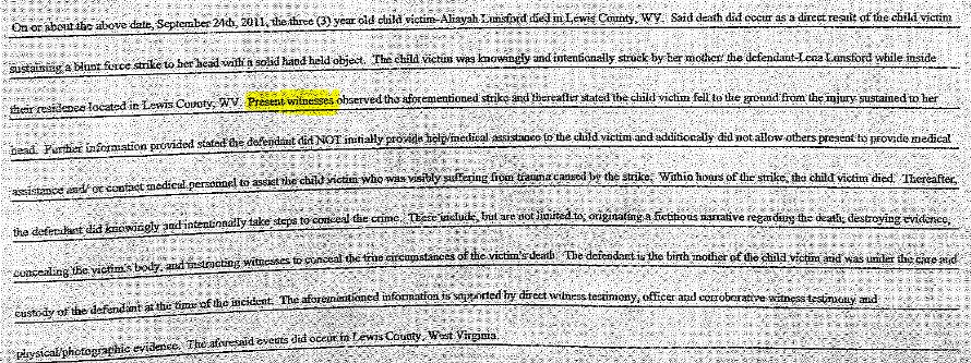 Lunsford killed her 3-year-old daughter, Aliayah, Sept. 24, 2012, and then concealed the body and the crime, Lewis Sheriff Adam Gissy and the investigator, Deputy E.E. Carpenter, alleged last week.