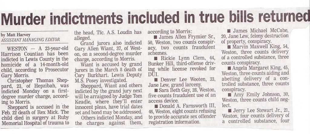 Here's the Lewis County indictments from the Clarksburg newspaper The Exponent Telegram (We've been waiting 8 months on the one for Cory Burkhart!!)