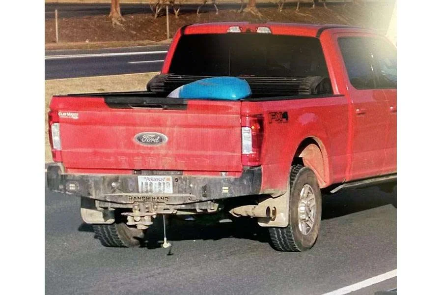 The blue and white kayak, which was observed in traffic camera footage, was not in the vehicle and has not yet been found.