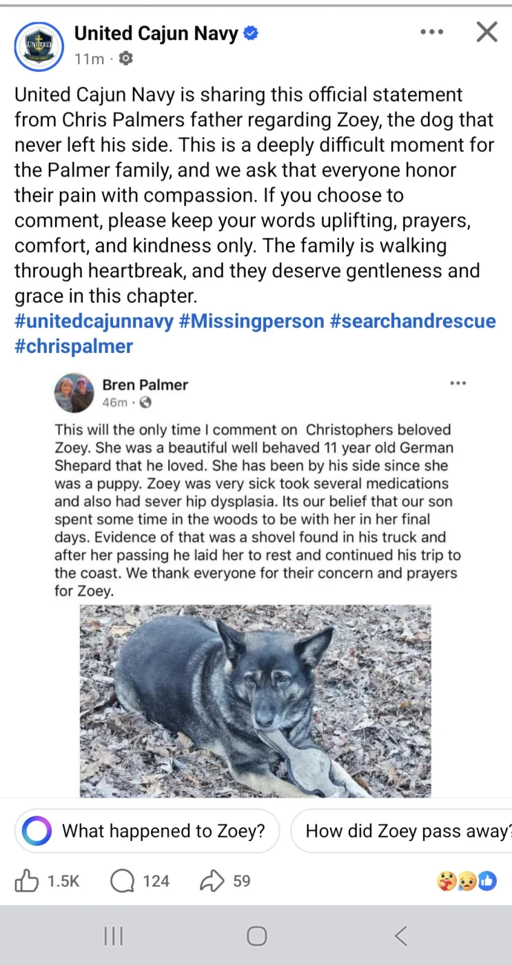 This case hasn’t left me since finding out about it. I hate that he had to go out alone. I hope that it was peaceful and he was at peace in his last days. They say once a person has decided to do this, they feel peace and relief. I hope that he’s reunited with Zoey wherever we go after this life. I choose to believe that he is. God bless his family and help them to find peace and comfort. And I hope they are able to find all the answers they need to help them heal into a new normal.