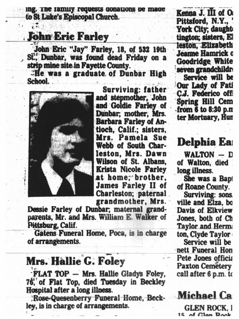 I've seen this case quite a few times recently in West Virginia missing persons groups, but as of yet it hasn't been added to the NAMUS database. There's a few photographs attached to the pages, but I'm not sure if I have permission to copy them over to here as of yet.