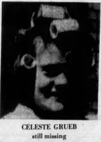 An extensive search, involving 200 to 300 people and covering about eighty square miles, turned up no indication of her whereabouts, and the search efforts were called off after two weeks. There has been no indication of Greub's whereabouts since 1976.