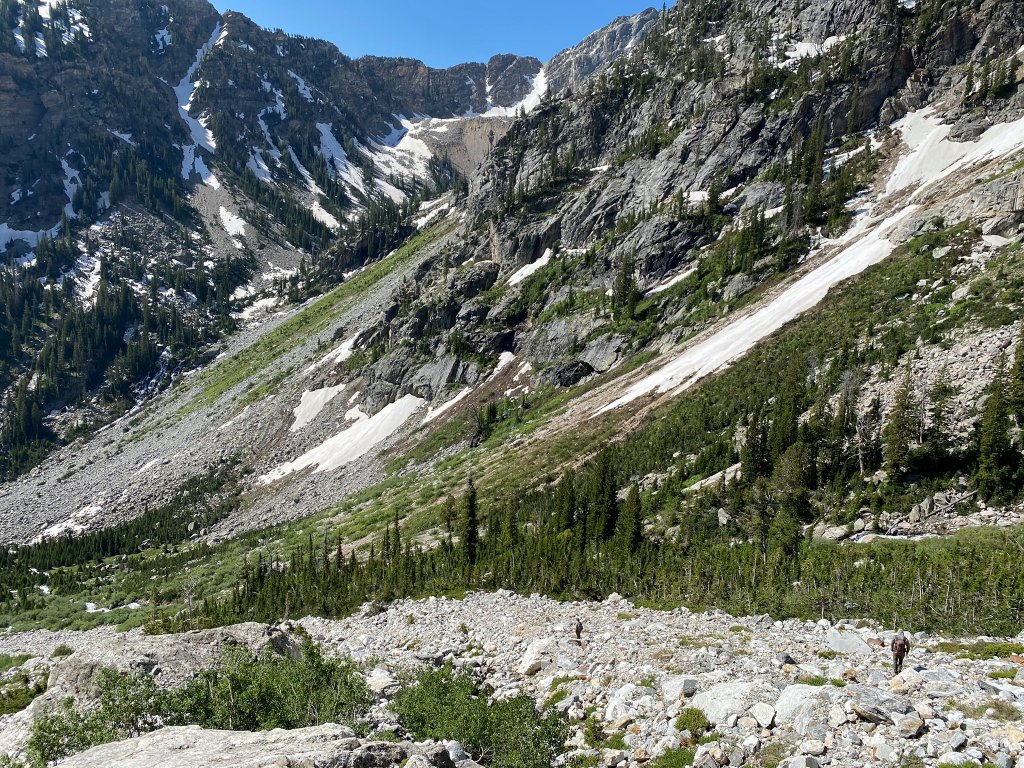 Based on information provided by a local climbing guide Wednesday night, operations were adjusted to focus efforts on the Garnet Canyon area. The last reported sighting of a man fitting McLaughlin’s description was on the Garnet Canyon Trail, a short distance above the Garnet Canyon/Surprise Lake junction, around 3:45 p.m. on Tuesday, June 8.