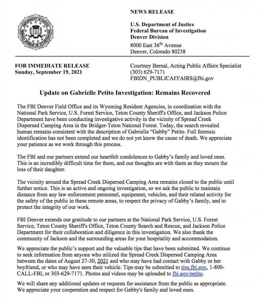 Gabby Petito case: FBI confirms human remains are missing woman's