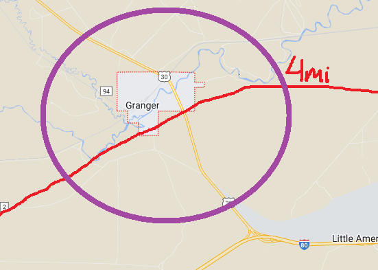 4 miles from I80 and "near Granger" so I imagine somewhere here: