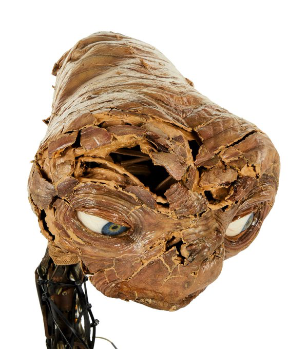 ET SELLS AT AUCTION. The original mechanical animatronic head from Steven Spielberg's "E.T. The Extra-Terrestrial" has sold. $635,000 was the winning bid. The head is a metal frame and a foam latex outer skin, which could pulse on up-close scenes. (via Julien's Auction)