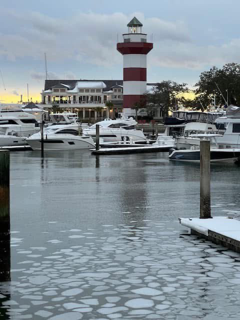 How cool is this!! The sleet/snow combo has formed some pancake ice (at least a version close to it) at Harbour Town! Temperature dropped to the 20s overnight.
