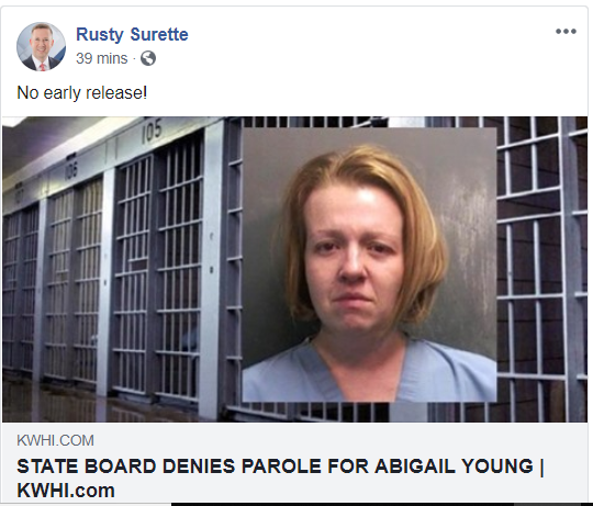 STATE BOARD DENIES PAROLE FOR ABIGAIL YOUNG | KWHI.com