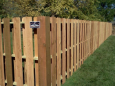 One day I was on my back deck. There's a walking path next to my house about... oh, 12-15' between the path and where I was sitting. There's a good neighbor style fence in-between the path and where I was sitting. See the image below if you're not familiar with them. They look solid when looking at them straight on, but you can see gaps if you view them from the side.