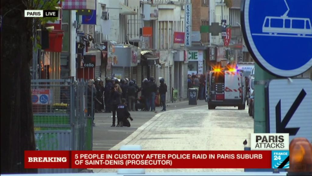 UPDATE: French TV reports at least one person killed in police raid in Saint Denis. They also report that target of the raid is "MASTERMIND" of Paris attacks Abel-Hamid Abu Oud.
