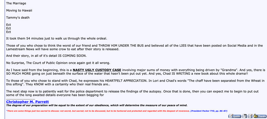 only listening to Chad's claims, he declares himself vindicated? And it all was about a custody battle? We know there was no active custody battle.
