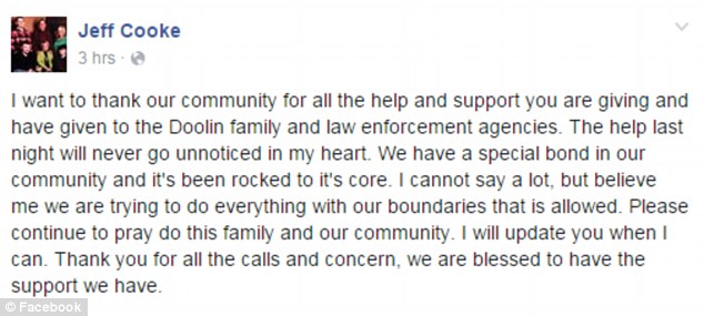 Sheriff Jeff Cooke of the Allen County Sheriff's Department said that they are doing everything possible, and also asked for prayers for the family and community