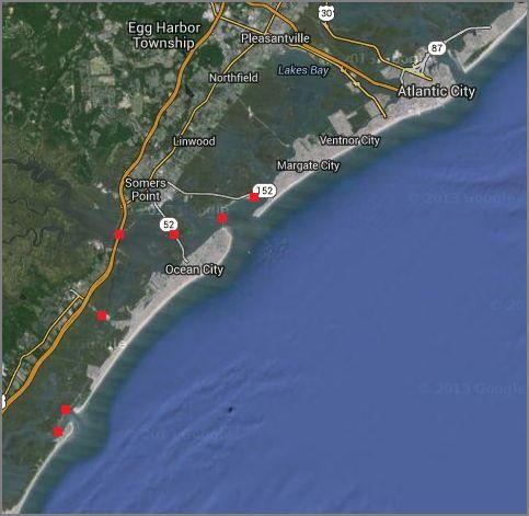 I looked at every bridge from AC to Corson's Inlet, which is south of Ocean City NJ.