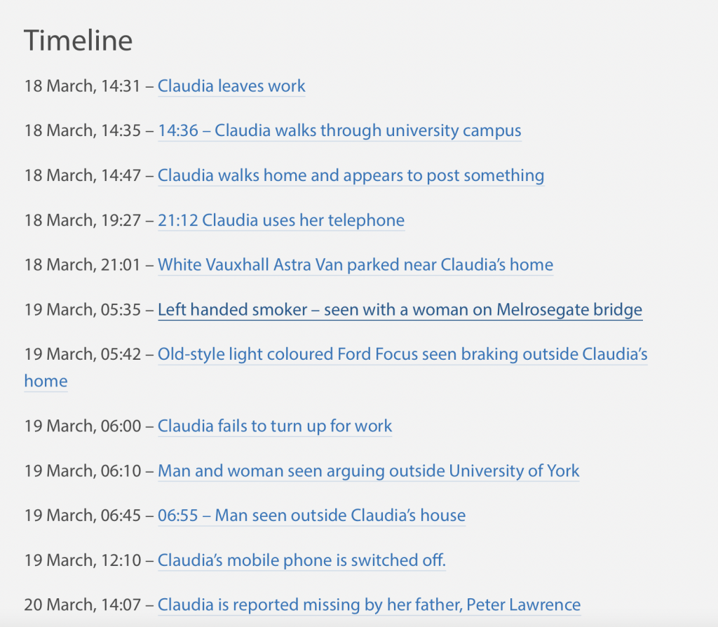 I dont know if there was only one perp....but im pretty sure that quite. a. few people know what happened and they've managed to keep quiet and would have been a. big help in clearing up any traces....there was also unidentified Dna in Claudius car and house...we dont know if it was related to her disappearance or not