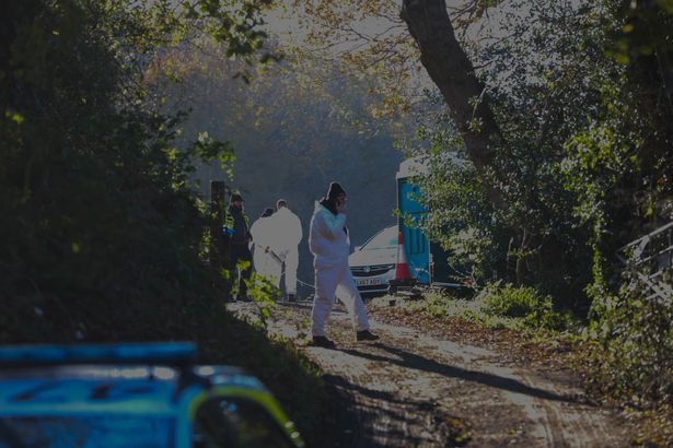 Officers wearing forensic suits, gloves and masks were photographed at Rock Lane as the investigation continues.