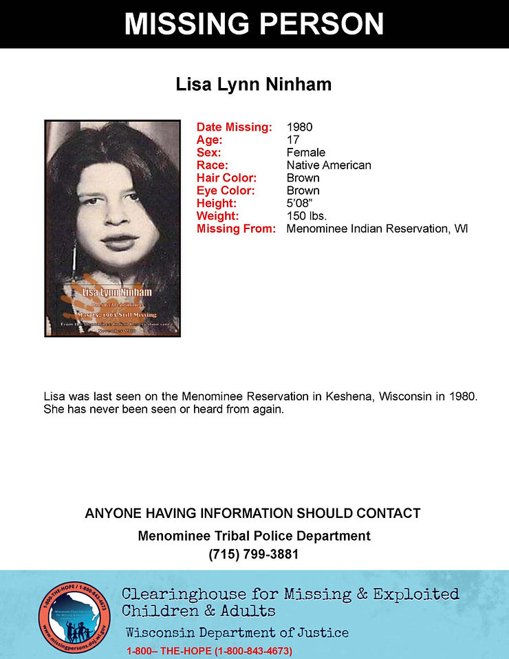 Ninham was last seen on the Menominee Reservation in Keshena, Wisconsin in August of 1980. She has never been seen or heard from again. Few details are available regarding her disappearance and her whereabouts remain unknown.